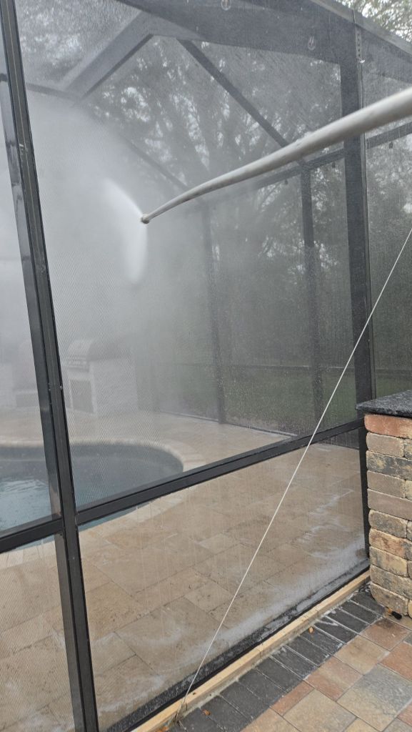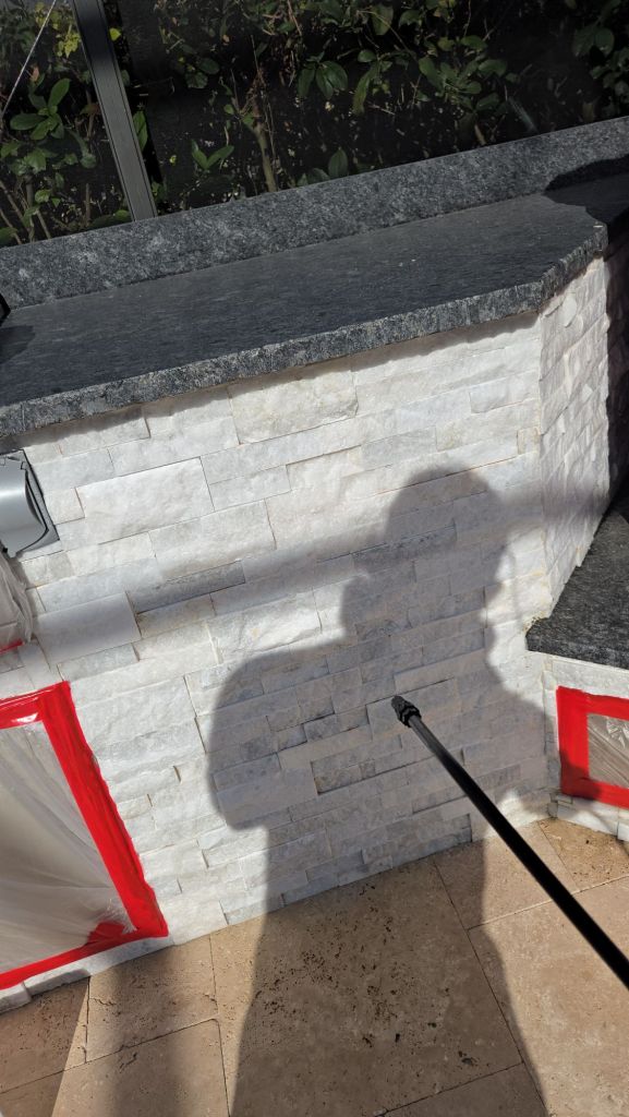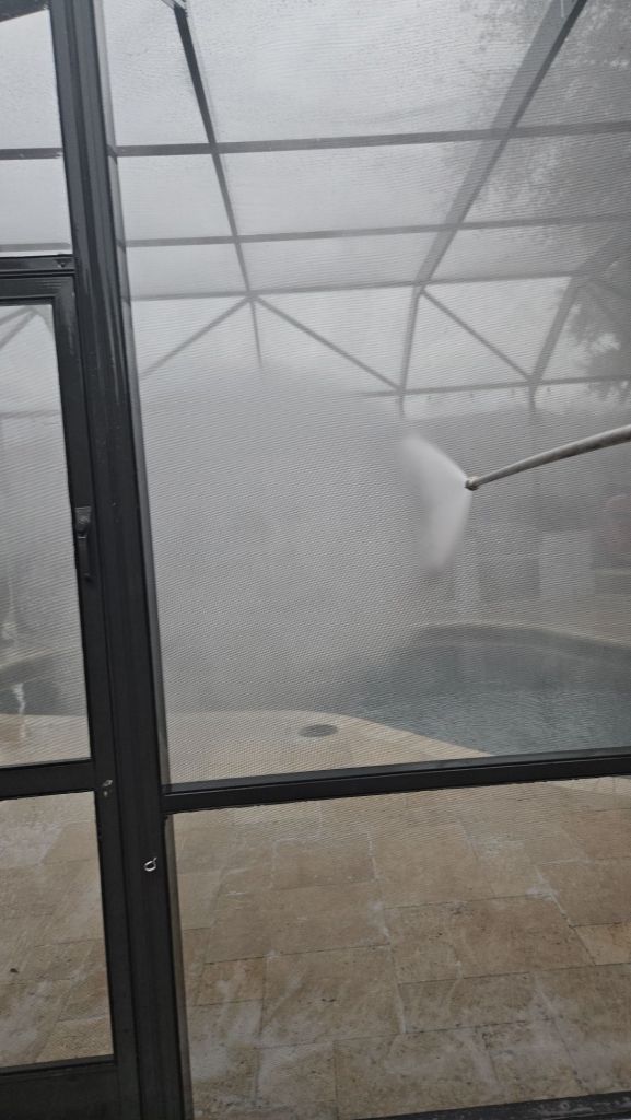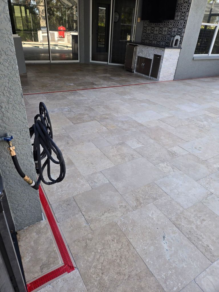 Previous customer wash, sand, and sealed with neutral sheen stone sealer, polished his stainless, cleaned gutters and enclosure #citrusparkflorida #lutzflorida