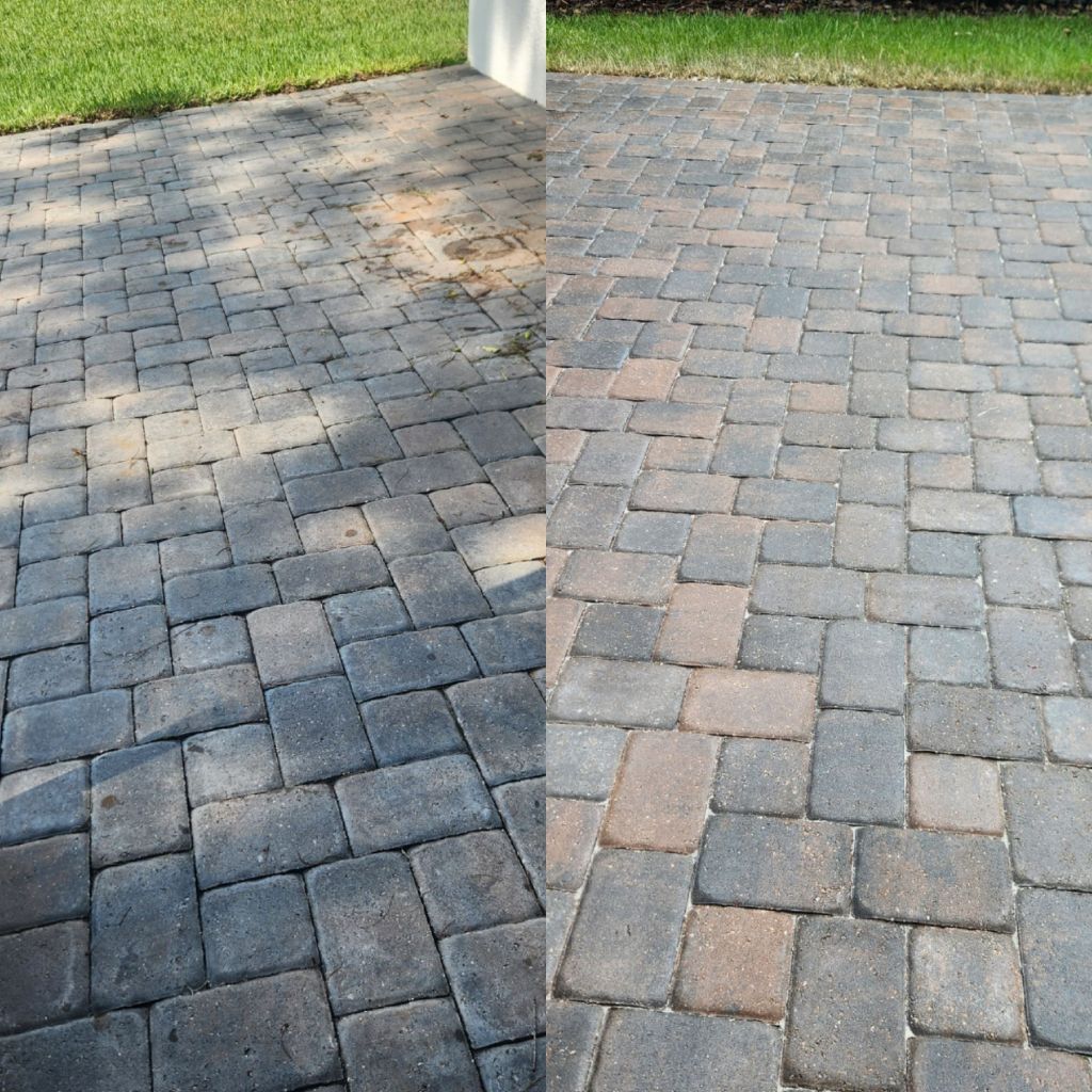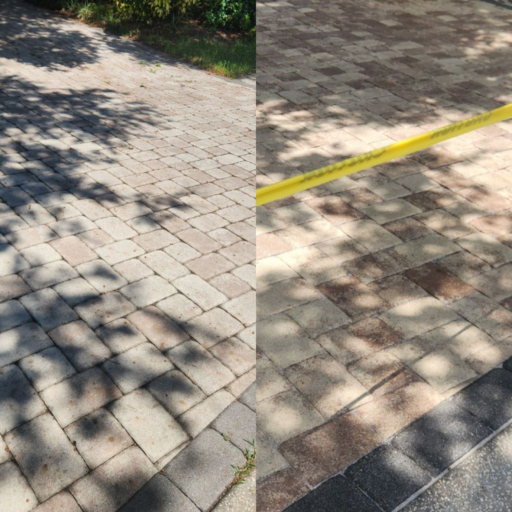I literally live next door to this family just 1 house down, so you KNOW I had to bring the service! They are SO pleased with their results. They were considering getting new pavers, but they knew a guy! Yours truly of course. Call/text 813 900 3527. Ask for the “neighborly service” and we will take great care of you!