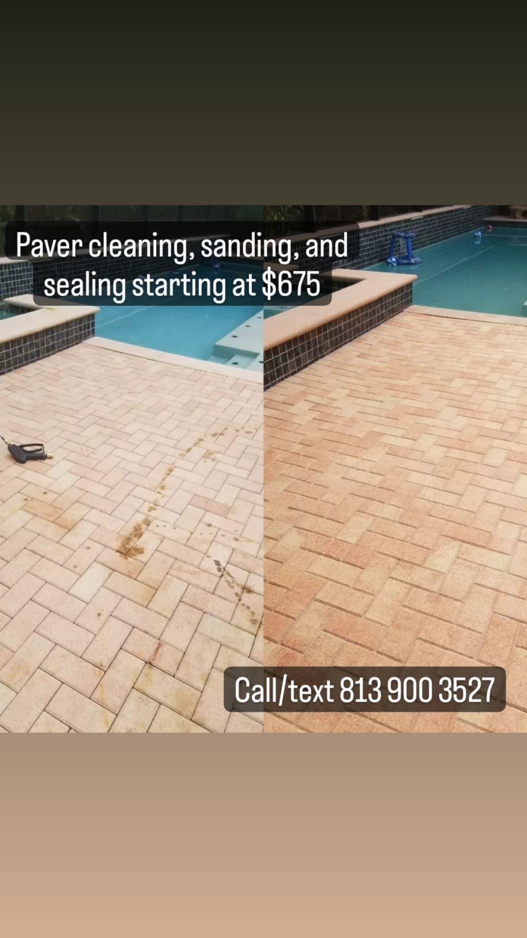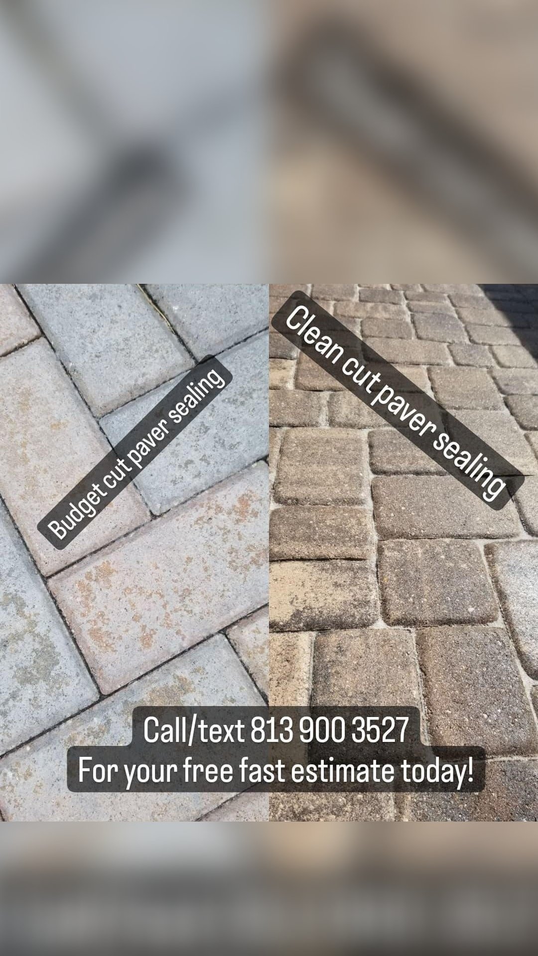Here’s an example of budget paver sealing. Beware of inexperienced paver sealers offering the world for cheap cheap cheap! Its 3× the cost to fix this. For a proper paver sealing service call/text 813 900 3527 today!
