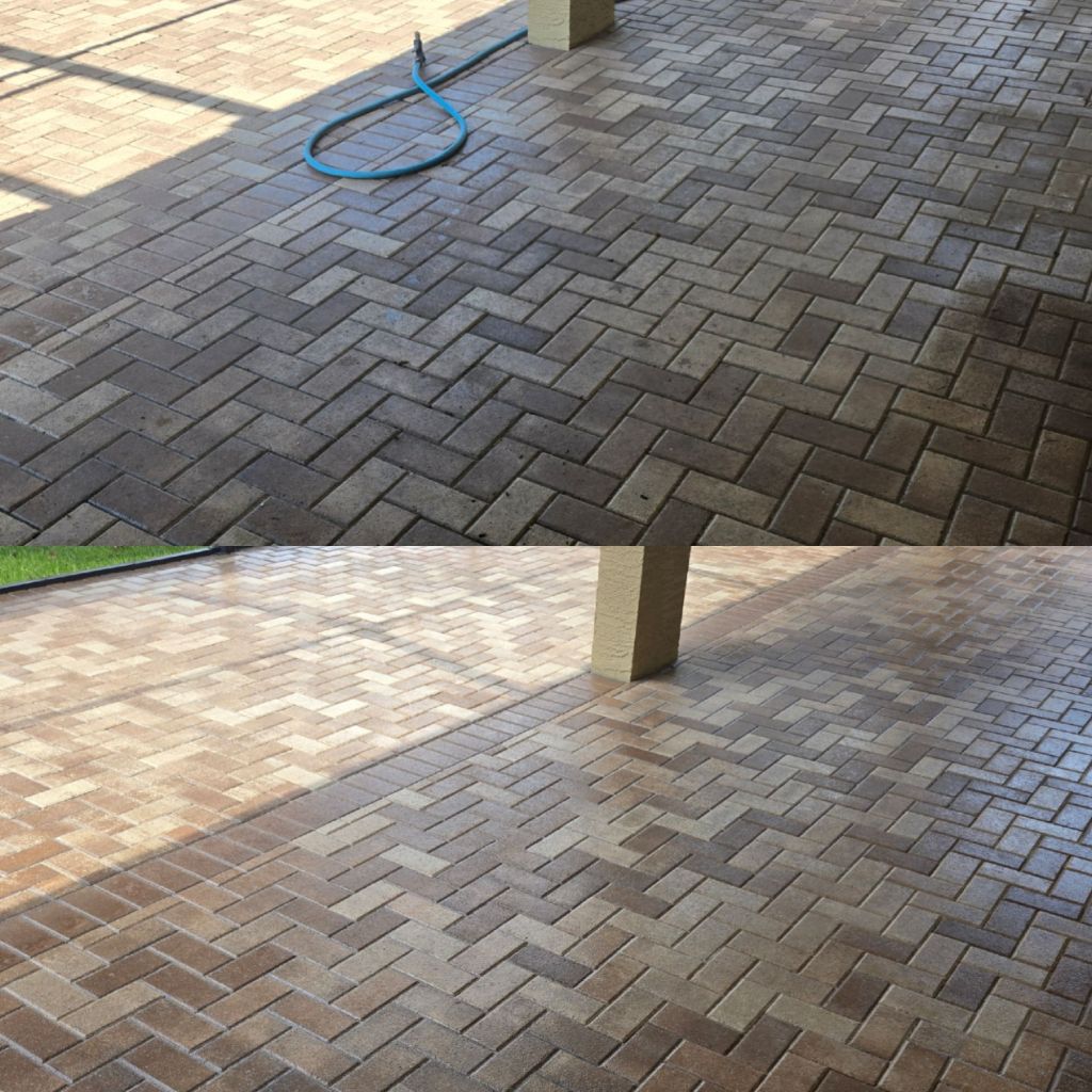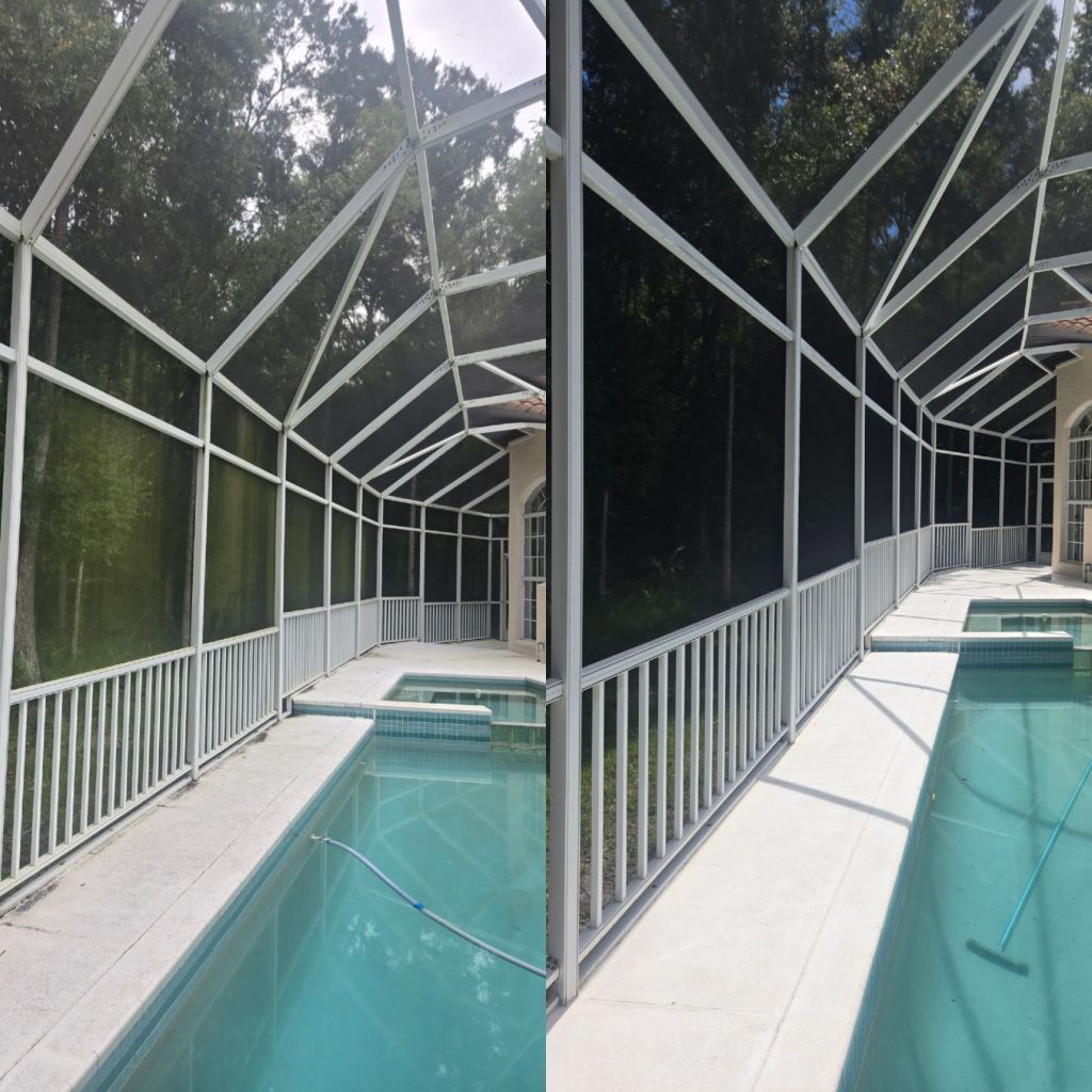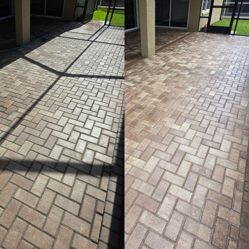 Get a free pool enclosure cleaning with the purchase of our paver cleaning, sanding, and sealing service. Up to 1000 sq ft!