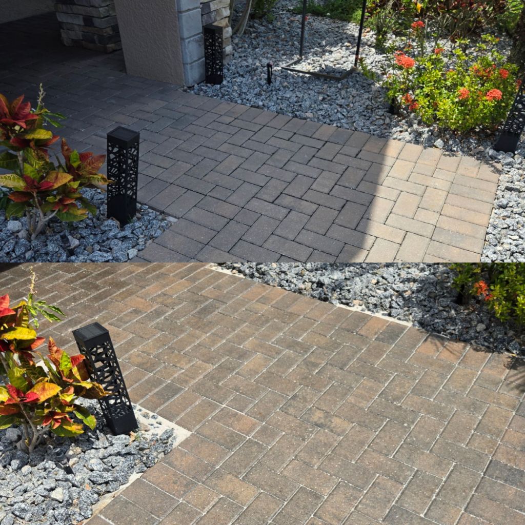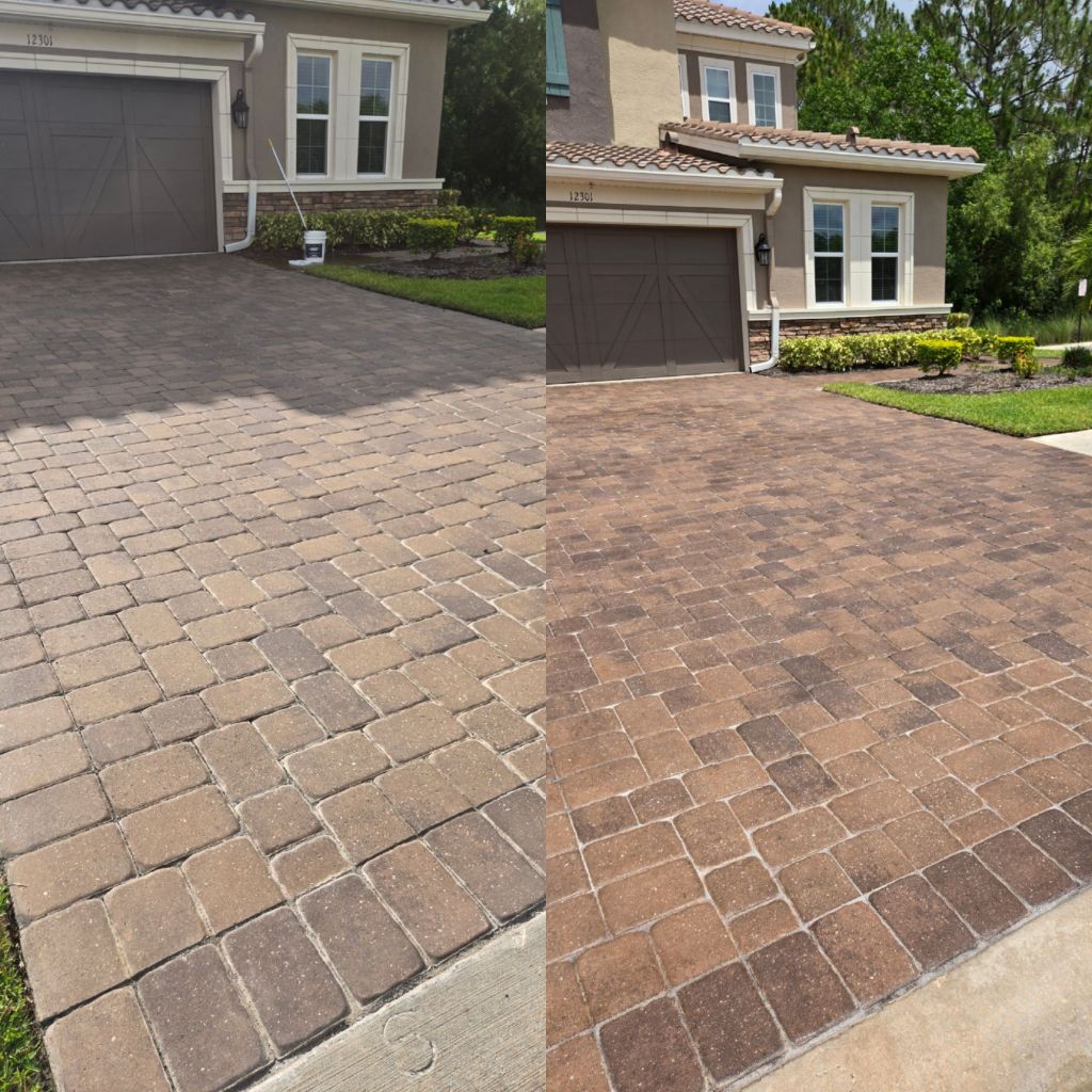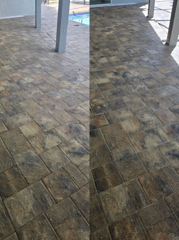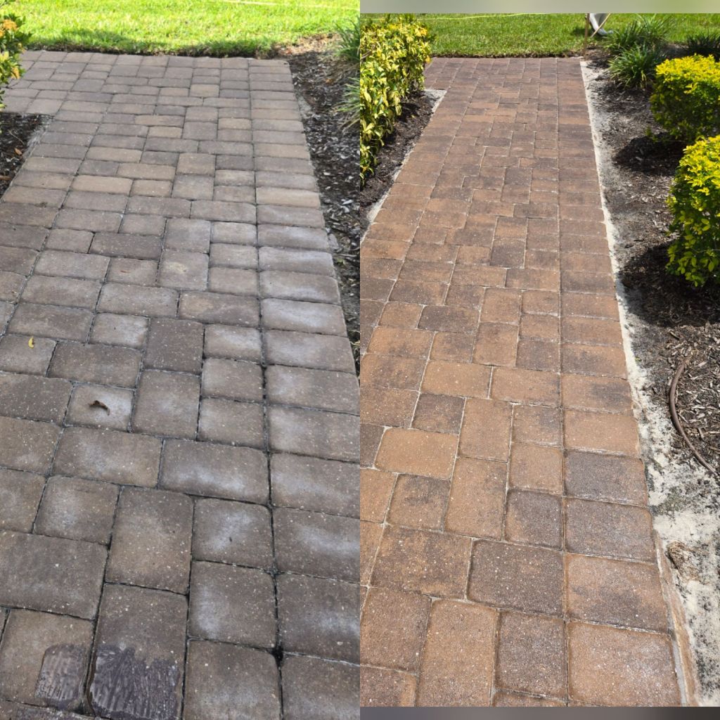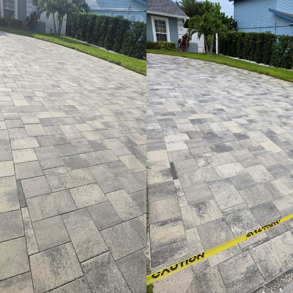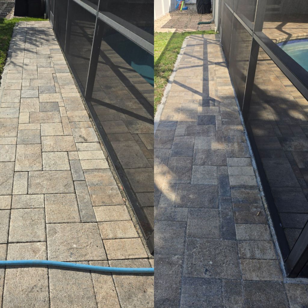 Referral we took care of in Dana Shores, FL. Wash, sanded, and sealed with 3 coats of Ure-seal Next Generation. Our top shelf premium sealer for the bill ballers only. The photos do not do it justice. Its a must see. It looks like the pavers are under glass. Call/text 813 900 3527 for a free fast estimate today